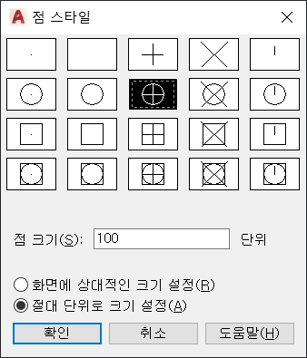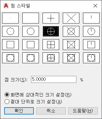 · 점 스타일 창에서 원하는 점 객체의 표시 스타일 및 크기 지정 하기